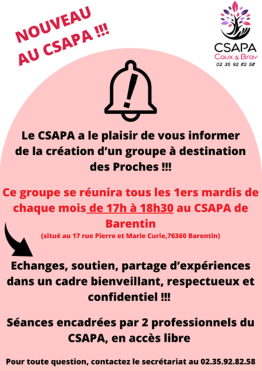 CREATION D'UN GROUPE ENTOURAGE BARENTIN TOUS LES 1ERS MARDI DE CHAQUE MOIS DE 17H A 18H30 AU CSAPA DE BARENTN